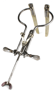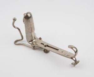 Es un espéculo de valvas anchas que se podía acoplar a la mesa de exploración.