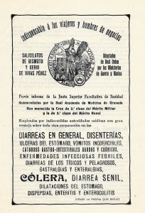 Anuncio publicitario del medicamento «Salicilatos de bismuto y cerio» de Vivas Pérez en el año 1913