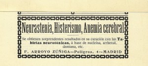 Anuncio de medicamentos del año 1913 en cuadros paisajistas