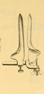 Es un espéculo bivalvo que se abría mediante una barra metálica de cremallera.