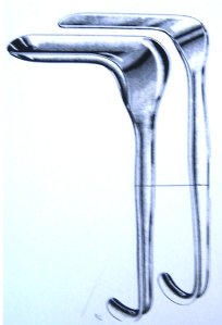 Es un espéculo de dos valvas, abertura horizontal mediante un tornillo en los mangos de las valvas.
