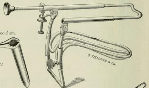 Es un espéculo que se acoplaba a la pernera de la mesa de exploración