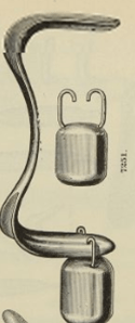 Es un espéculo de doble valva que en una de ellas se coloca un peso.
