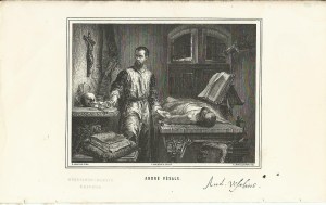 Primera hoja de la obra. Grabado de Moullieron de Andrés Vesalio