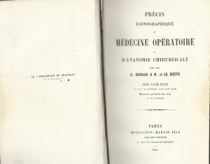 Médecine Opératoire de Cl. Bernard y Ch. Huette. Año 1846. El titulo original es «Précis iconographique de Médecine Opératoire et d´anatomie chirurgicale»