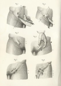 Médecine Opératoire de Cl. Bernard y Ch. Huette. Año 1846. El titulo original es «Précis iconographique de Médecine Opératoire et d´anatomie chirurgicale»