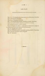Grabado de la obra “Médecine Opératoire” de Cl. Bernard y Ch. Huette. Instrumentos quirúrgicos para intervenciones en los oidos. Siglo XIX