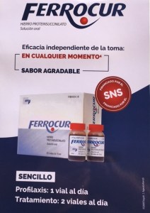 Merchandising con publicidad del medicamento Ferrocur que se le entrega al medico. Es una hoja en color del tamaño folio con información del medicamento