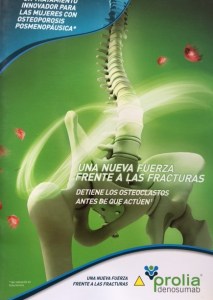 Merchandising con publicidad del medicamento Prolia que se le entregaba al medico. Es una carpeta de cartón en colores de tamaño folio.