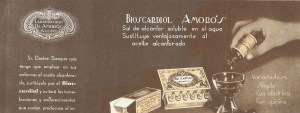 Cartón de papel secante con propaganda del medicamento Bioscardol Amorós. Año 1943