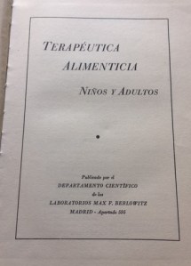 Terapéutica Alimenticia de niños y adultos publicada por el departamento de los Labortorios Max Berlowitz en el año 1944