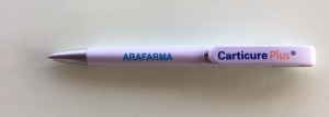 Bolígrafo con publicidad de Arafarma. Carticure plus.