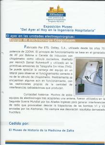 D.José María Pagan Pagador, decide organizar en los actos paralelos del congreso una Exposición que titula “Del Ayer al Hoy en la Ingeniería Hospitalaria” con piezas del Museo de Medicina de Zafra. Se realizan las gestiones oportunas y los estudios necesario y se organiza la exposición. Se seleccionaron más de 40 aparatos e instrumentos del Museo de Historia de la Medicina de Zafra. Se realizó un estudio pormenorizado para crear carteles documentados de las piezas y se contrastaba el aparato antiguo de medicina con el formato actual para ver las diferencias que existen del aparato antiguo con el que se utiliza en la actualidad.