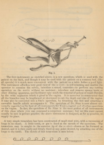 Las ventajas eran que el espéculo podía quedar fijo al cinturón de la paciente y de esta forma no precisaba enfermeros para sujetar las valvas y el medico podía realizar el tratamiento quirúrgico en el cérvix uterino.