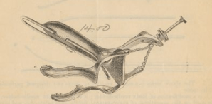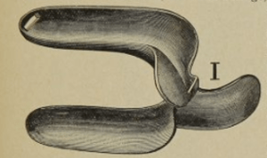 Era un instrumento que tenia dos hojas similares al espéculo de Sims, pero más anchas y más cortas las valvas. Tenían una hendidura para acoplar las ramas y se complementaba con un cinturón que tenia una banda para sujetar el espéculo.
