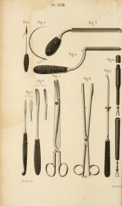 Lámina de los Instrumentos quirúrgicos para intervenciones de obstetricia. Siglo XIX