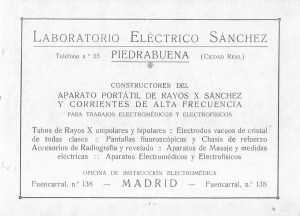La fábrica de instrumentos médicos de Mónico Sánchez en Piedrabuena se anunciaba como «Laboratorio Eléctrico Sánchez»