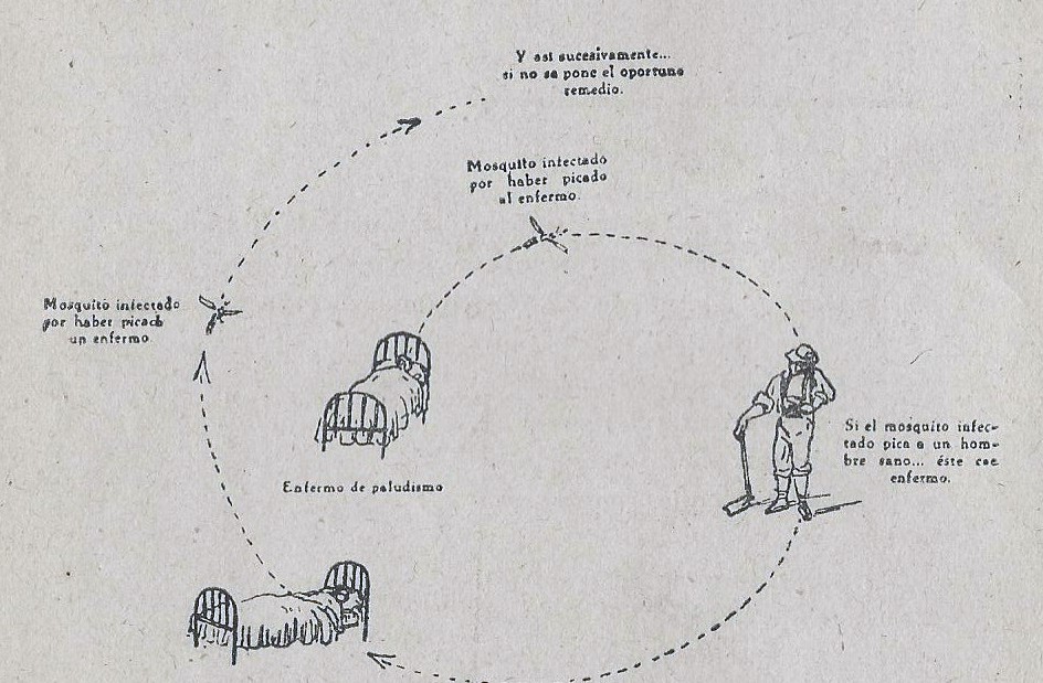 Grabado del folleto Instrucciones del Paludismo en España en el año 1943 como se transmitia el paludismo
