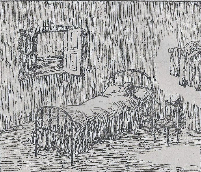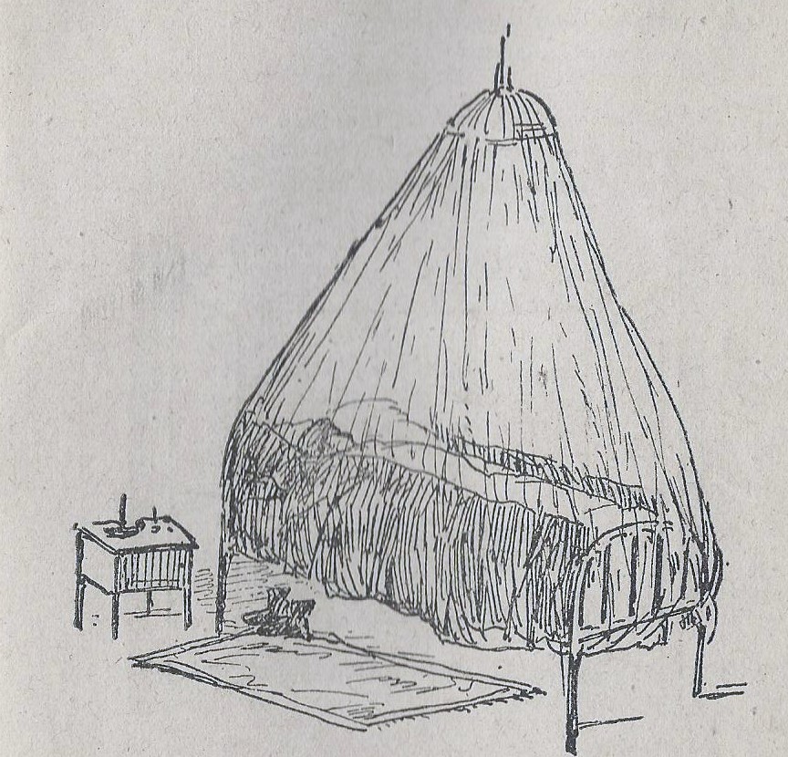 Grabado de la recomendaciones de las mosquiteras en las camas en Instrucciones del Paludismo en España en el año 1943