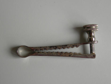 Es una pinza que se cerraba girando un tornillo en su extremo.